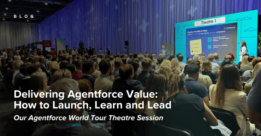World Tour London was a fantastic event for Agentforce this year, with over 300 attendees joining iMMERSIVE’s CRO, Abi Chan, and Head of AI and Accelerators, Simon Clarke, for our headline session: Delivering Agentforce Value – How to Launch, Learn and Lead.